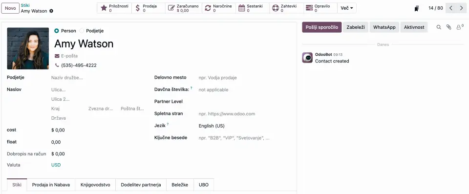 - Sledenje aktivnostim, klicem, e-pošti in sestankom
